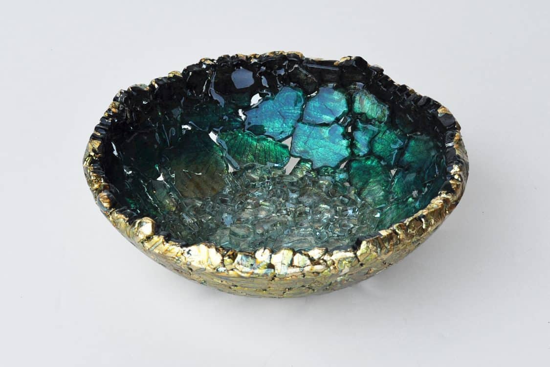 Custom piece for a Chicago collector. Reclaimed glass, pigments, silver-toned…