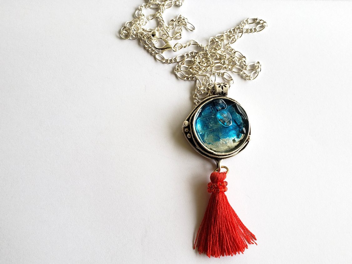 Dreamscape 123 is created from reclaimed glass, black and blue pigments and variegated metal foil….