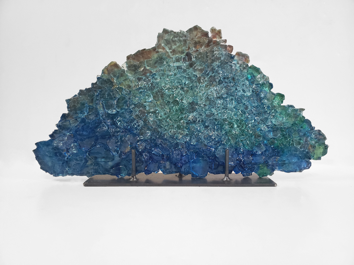 Dreamscape 120 is created from reclaimed glass, blue and teal pigments and a bronze toned variegated metal foil. It arrives ready to display in a… Read More »Dreamscape 120