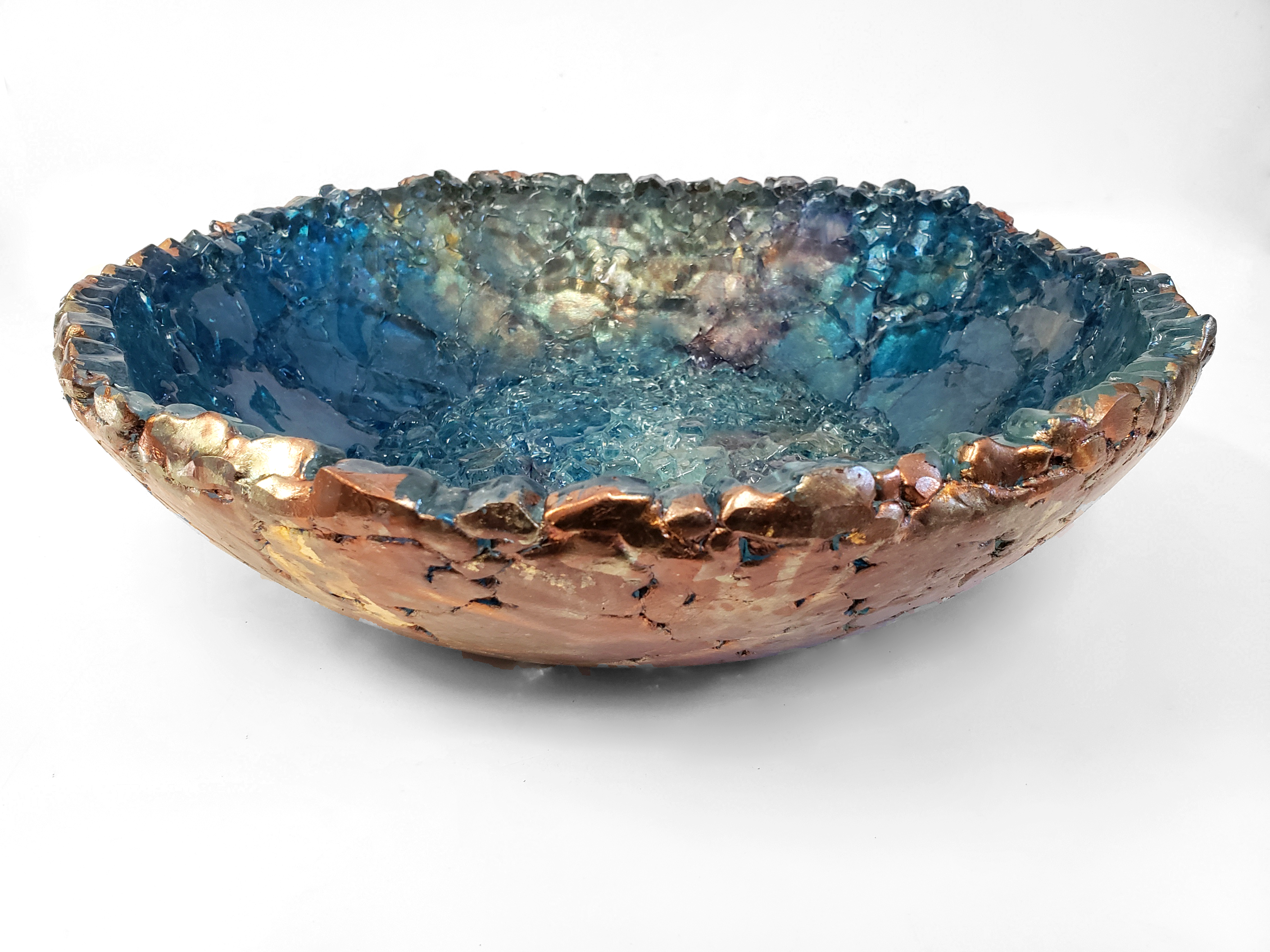 Dreamscape 129 is created with reclaimed glass finished in cobalt blue and bronze metallic finish. Notice the lilac highlight that draws your eye around around… Read More »Dreamscape 129 in Cobalt & Lilac