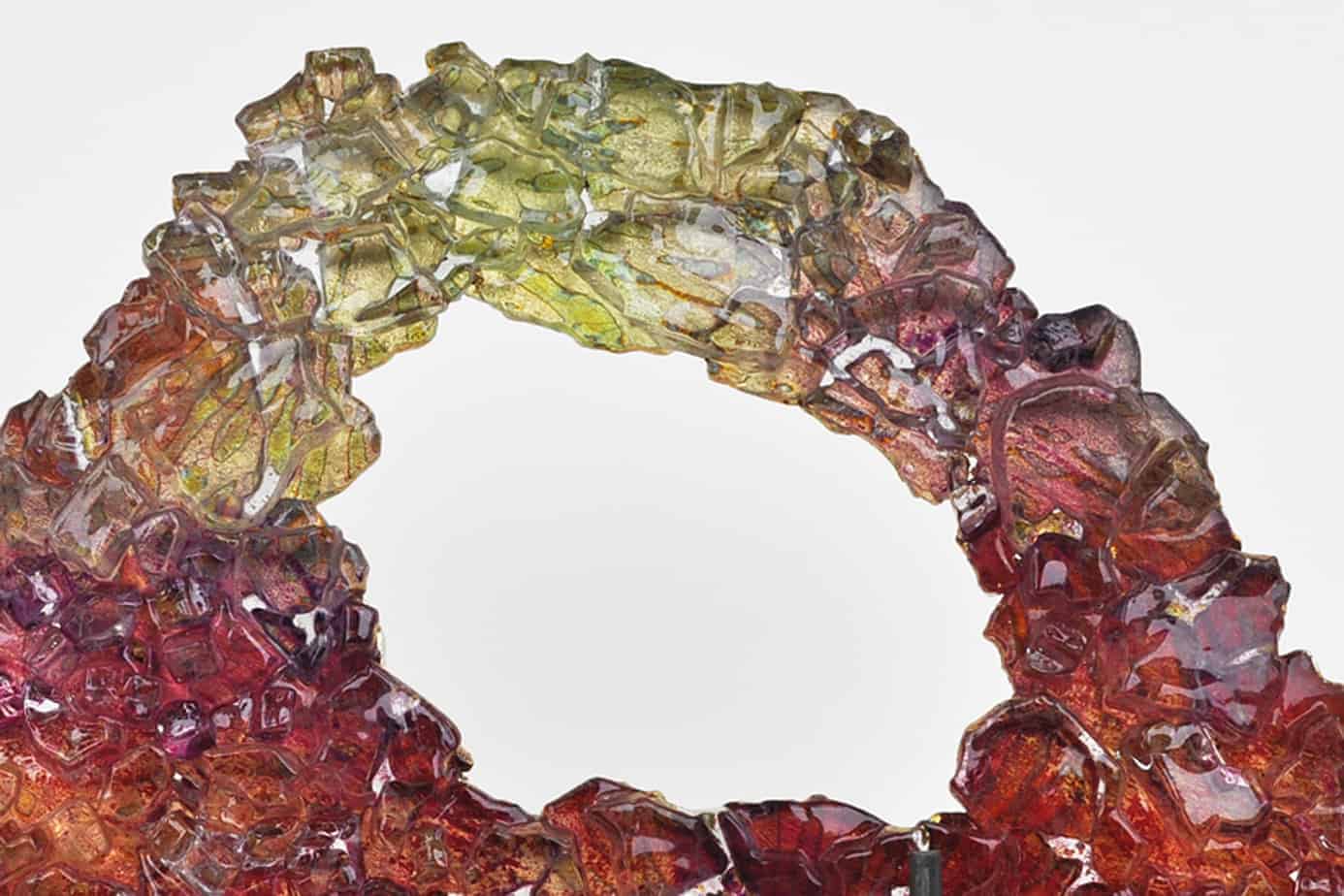 Inspired by the stunning geology of Sedona, AZ, this piece is created from reclaimed glass, pigments, and variegated copper foil. It is complete with a custom… Read More »New Work: Sedona Arch Commission
