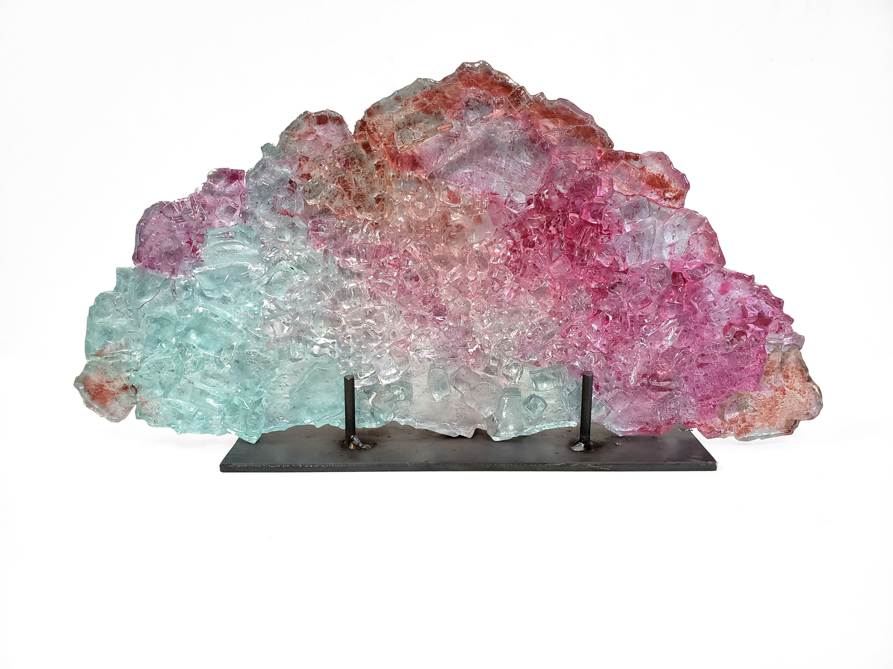 Purple and russet combine to create a rich textural visual feast. Reminiscent of carbonated root beer, this piece is created with reclaimed glass, pigments and… Read More »Dreamscape 131, Purple & Russet